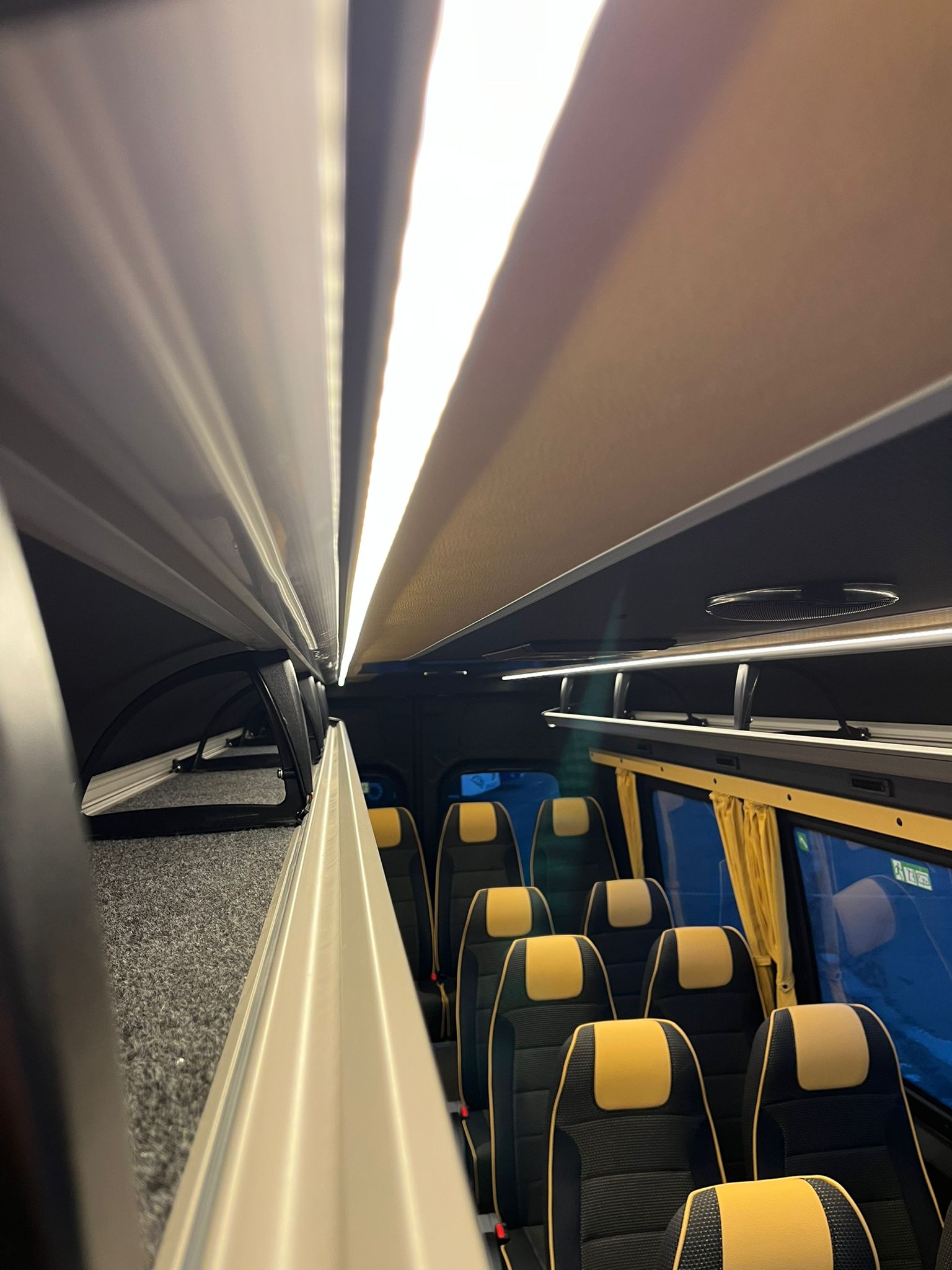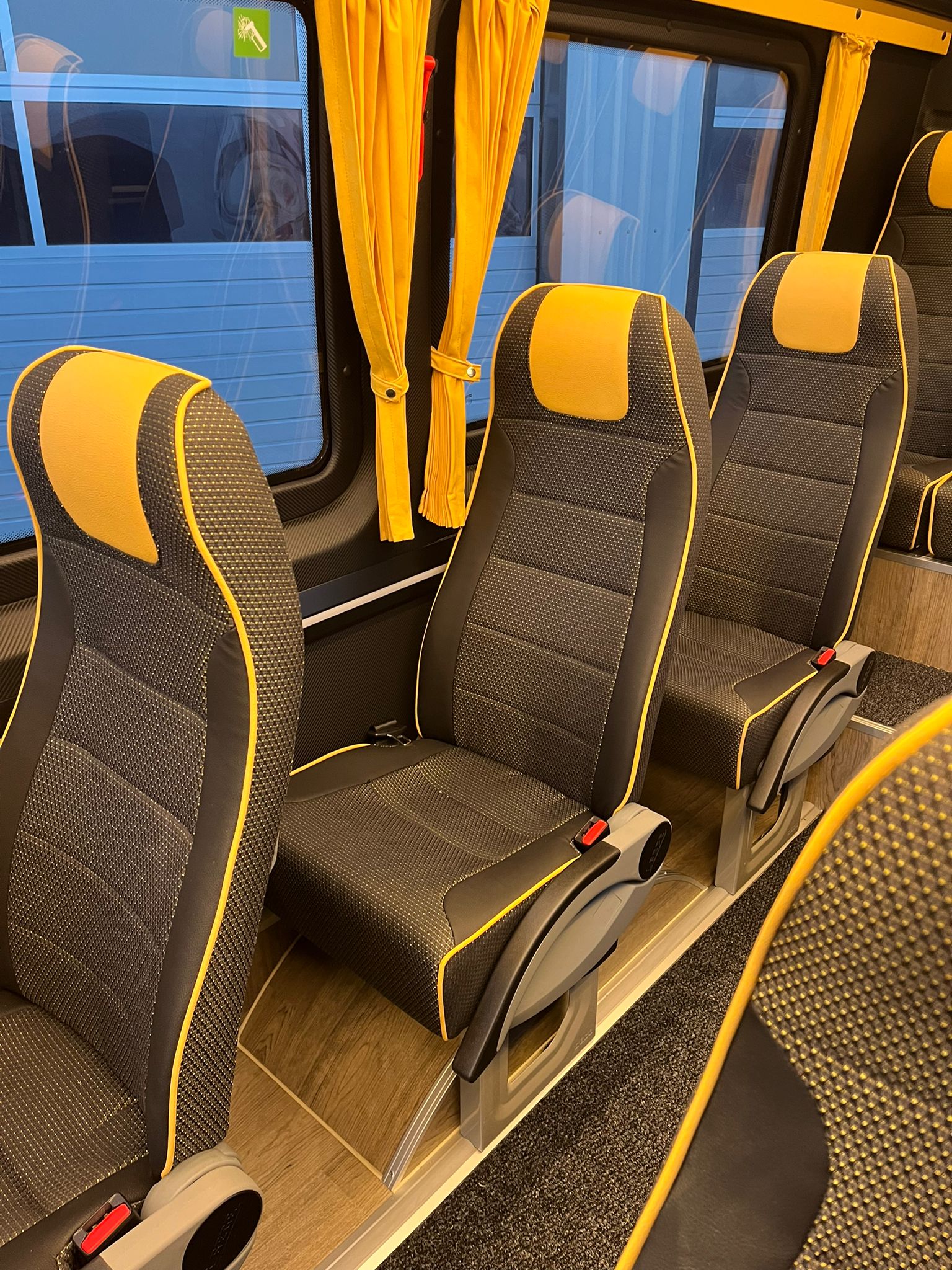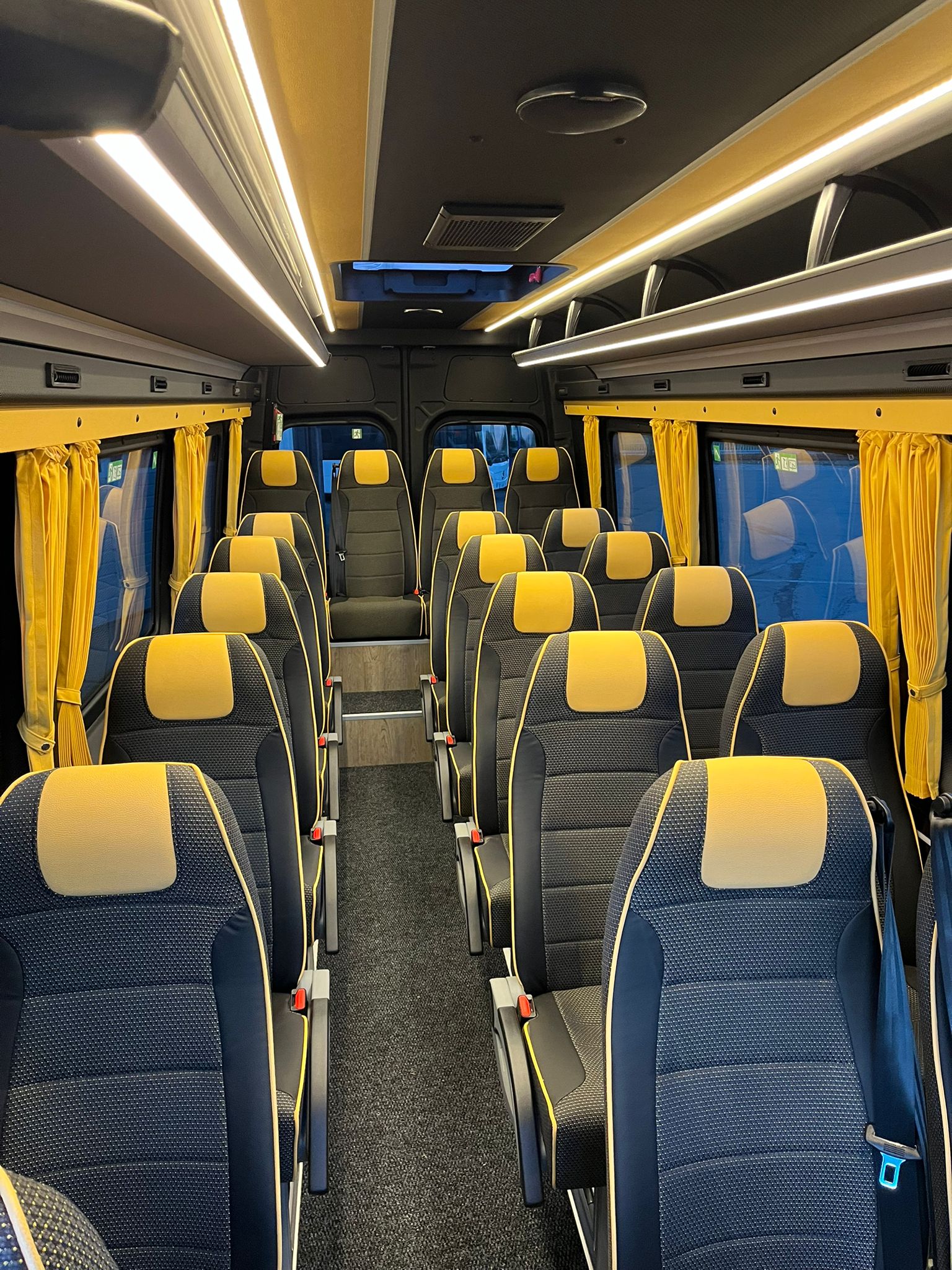 Neufahrzeug, Lagerfahrzeug, direkt verfügbar ab Standort Nottuln bei Münster, Mercedes Benz Sprinter 517 CDI (L3H2), Euro 6 E, Automatik 9 G-Tronic, Klimaanlage Fahrer (MB Tempmatik) und Fahrgäste (separat zu bedienen), 19+1+1 Sitze seitlich und rückwärts verstellbar, Panoramadoppelverglasung, Fahrgasttüre elektrisch mit Fernbedienung, Konvektorenheizung rechts und links im Fahrgastraum, Gepäckablagen rechts und links mit separaten Belfütungsgittern unterhalb der Gepäckablagen, zusätzliche Schalldämmung Motor und Getriebe, Mercedes Benz Notfall Rufsystem, Rückspiegel heizbar und elektrisch verstellbar, MBUX Multimedia Anlage mit 10 Zoll touch screen, Digitalradio (DAB), Rückfahrkamera, Multifunktionslenkrad (höhenverstellbar), Frontscheibe wärmedämmendes Glas, Schulbusblinker am Heck, Schmutzfänger vorn und hinten, Reserveradhalterung mit Reserverad Original MB, Fahrerschwingsitz (Bezug Maturin) mit Armlehne, Regensensor, COC-Papiere Aufbau: 19+1+1 Sitze mit Gurten (100 km/h Zulassung), seitlich und rückwärts verstellbar, mit vertieftem Heckkofferraum, Tag-/Nacht-LED Beleuchtung, Gepäckablagen mit Beleuchtung, Wand- und Deckenverkleidung Textil/Kunstleder, Boden mit Antirutschbelag, Sitze Fabrikat SEGE Comfort, Stoffbezug mit Kunstleder Keder und Kunstlederkopflatz, Reiseleitersitz klappbar, Sitze auf Aluschienen montiert (verschiebbar), Sitze mit 2-Punkt und 3-Punkt Gurten (3-Punkt Gurte an den vorderen Reihen und Gangplatz letzte Reihe) Armlehne klappbar, Haltegriff und Zeitungsnetz, Vorhänge an den Fenstern, Fahrgasttüre elektrisch betätigt mit Fernbedienung und vom Fahrer zu öffnen/schließen. Gepäckablagen rechts und links, Deckenlautsprecher, Doppelverglasung getönt, Notausstiege nach Vorschrift, Reiseleiter-Mikrofon, Mittelgangteppich Klimaanlage für Fahrgäste 13,5 KW, Klimaautomatik, Belüftungsdusen über den Fahrgastsitzen unterhalb der Gepäckablagen, Konvektorenheizung beidseitig Neufahrzeug mit Überführungskilometern, Standort Nottuln bei Münster Diverse Fahrzeuge in verschiedenen Ausstattungen (Schulbusausstattung, Reisebusausstattung- auch verlängert), kurzfristig lieferbar, beziehungsweise auf Lager. Sprechen Sie uns an. Besichtigung und Probefahrt nach Absprache Sie erreichen uns persönlich unter Tel.: +49 170 2644606 oder per E-mail an: g.mertschuweit@haumer-nutzfahrzeuge.de Irrtümer, Änderungen und Zwischenverkauf vorbehalten. Sowohl die Fahrzeugbeschreibung als auch -ausstattung sind vorläufig und unverbindlich und werden in dieser Form nicht automatisch zum Vertragsinhalt.